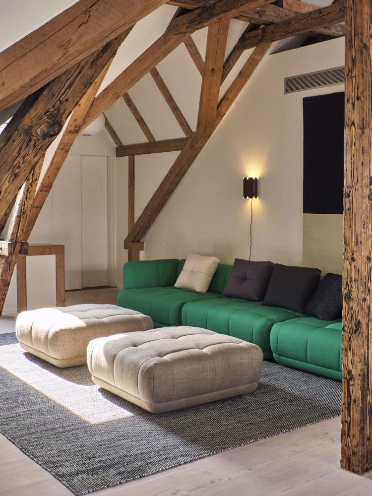Described by the designers as a ‘quilted landscape sofa system’, Quilton serves as a central platform for living, working, socializing and relaxing. Offering a wide assortment of different modules, Doshi Levien’s multi-functional sofa provides the flexibility of a modular system with generous dimensions and sculpted forms. Its numerous upholstery choices include mono, duo, or with a black contrasting platform, with the finely-detailed quilted upholstery encapsulating the softness and volume of the foam and wadding seats and creating exceptional comfort. Quilton takes sofa design to a new level of versatility that makes it suitable for a wide range of domestic and public spaces.