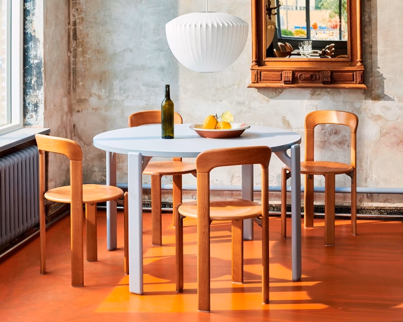 With its distinctively rounded edges and curved backrest, it was the first chair to be patented with Dietiker’s unique screwless wood-to-metal connection and has become one of the most successful Swiss chairs of all time. Its solid construction, strength and stackable design give it a timeless quality that makes it suitable for using in a wide variety of domestic, public or corporate settings. The iconic chair has been modified in new dimensions and material combinations to accommodate contemporary lifestyle requirements. Made in solid wood, it is available in original colours, as well as new tones and upholstered seat options selected by HAY. The Rey Collection is not available from HAY in Switzerland.