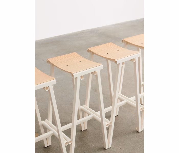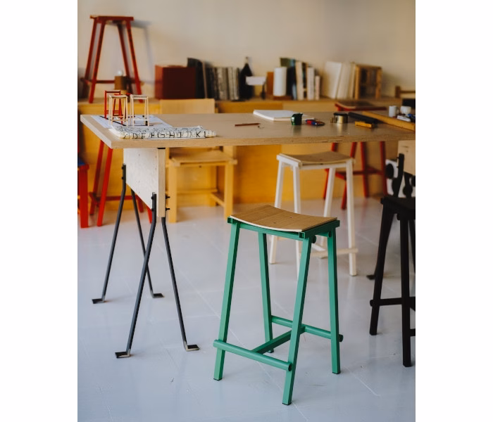 Designed by Spanish designer Marc Morro, Taburete 8 Bar Stool uses direct design language to create a functional and robust bar stool with a distinct yet minimalistic expression. Both the curved plywood seat and steel tubing frame are clearly presented, with the different components enhanced by their raw simplicity and bold use of colour. Available in two heights, with the oak veneer seat and steel frame in different finishes and colours, Taburete 8 combines the comfortable seat with industrial aesthetics to create a versatile stool that is easy to integrate in bars and restaurants, as well as in private homes