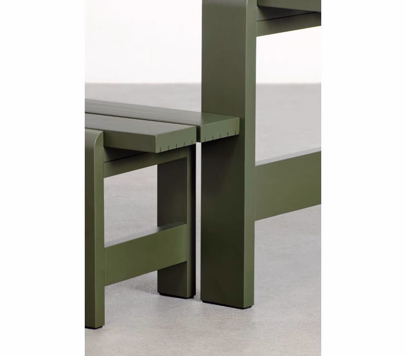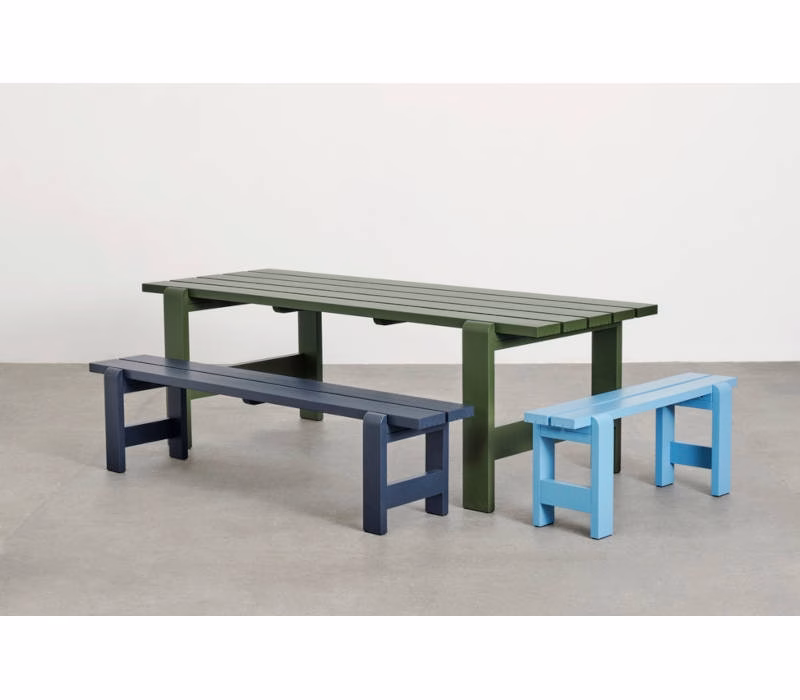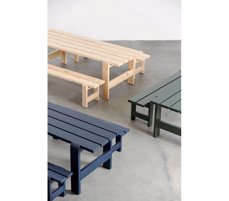 Hannes & Fritz’s Weekday Bench was inspired by their impromptu solution to a lack of seating at a dinner party. Retaining the original idea of bringing people together, the Weekday Bench combines a solid, robust presence with softly rounded joints, conveying a sense of warmth and familiarity that invites shared dining and a social atmosphere. Featuring the same simple construction as the classic picnic bench, it is made in strong, durable pine planks that will patinate beautifully and last for many years to come. The Weekday Bench’s strong yet universally appealing character combined with its water-based, weather-resistant surface treatment makes it suitable for outside use in a wide range of settings, from cafés and public parks to private or shared gardens. Available in different sizes in solid pine in a variety of finishes and colours. The benches can also be supplemented with seat cushions in selected textiles for extra comfort.
