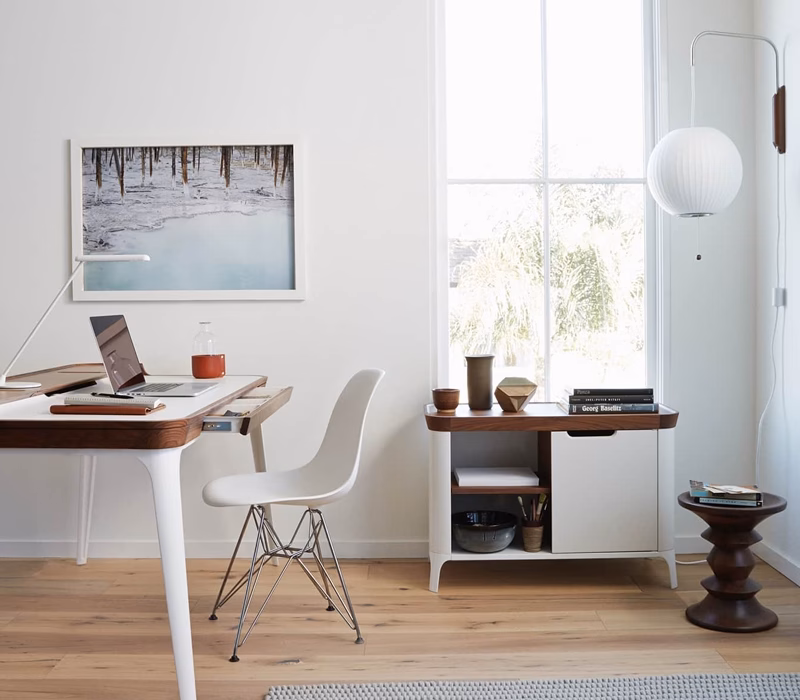 The Nelson Ball Wall Sconce is part of the Nelson Bubble Lamp series. A walnut wall mount and steel arm suspends the spherical shade and lets the lamp fill any interior with a warm, diffused light. The lamp’s arm can be adjusted from left to right and up and down without having to change its position on the wall.