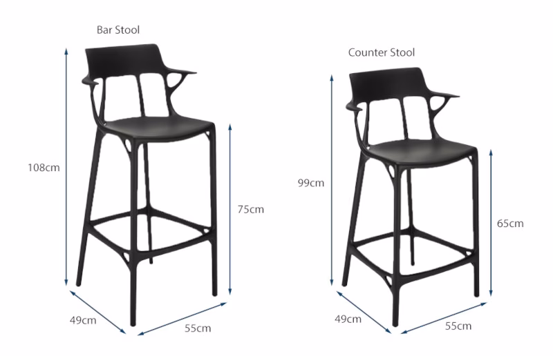 Kartell A.I. Fixed Stool / Barstool 65 or 75 Seat Height