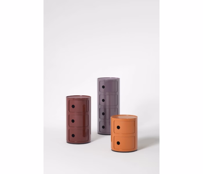 The modular elements were designed to meet different needs and to fit perfectly into every room in the home. Componibili first appeared in 1967 and have become a timeless furnishing classic. Today’s Componibili are 32 cm in diameter. Thanks to fixed compositions of two, three or four elements, these products are both functional and practical in all environments and now in 5 new colours