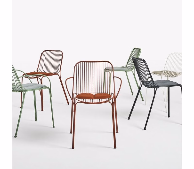 The armed dining chair by Kartell has a stylish, functional design in painted, galvanised steel with an exciting expression. It has organic shapes with a strict structure perfect for the patio or the terrace. Combine with other parts in the series and create your own personal look.