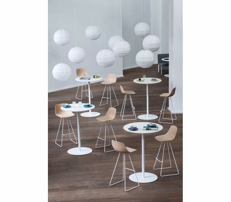 BRIO, that means playful, useful and versatile. With its elegant functionality and lightness, this table meets every needs, whether in restaurants, in the office or in any community space. This additional element is as practical as desks and sofas. With a choice of different heights (fixed or easily adjustable), BRIO stands out for its beautiful minimalist design.