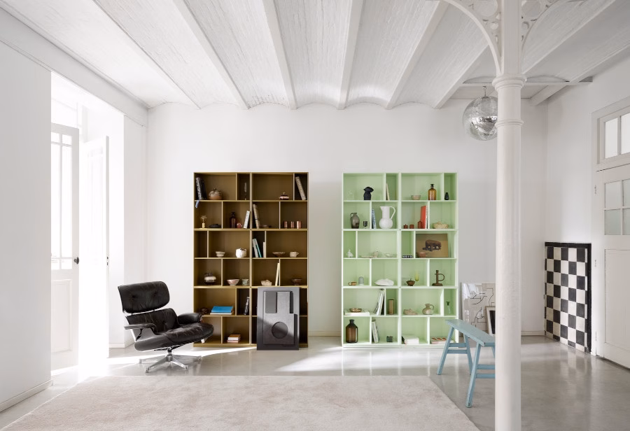 The bookshelf is composed of six individual modules which eventually can be rearranged in new storage solutions. READ is available with suspension rails or plinth and in all Montana’s 40 colours.