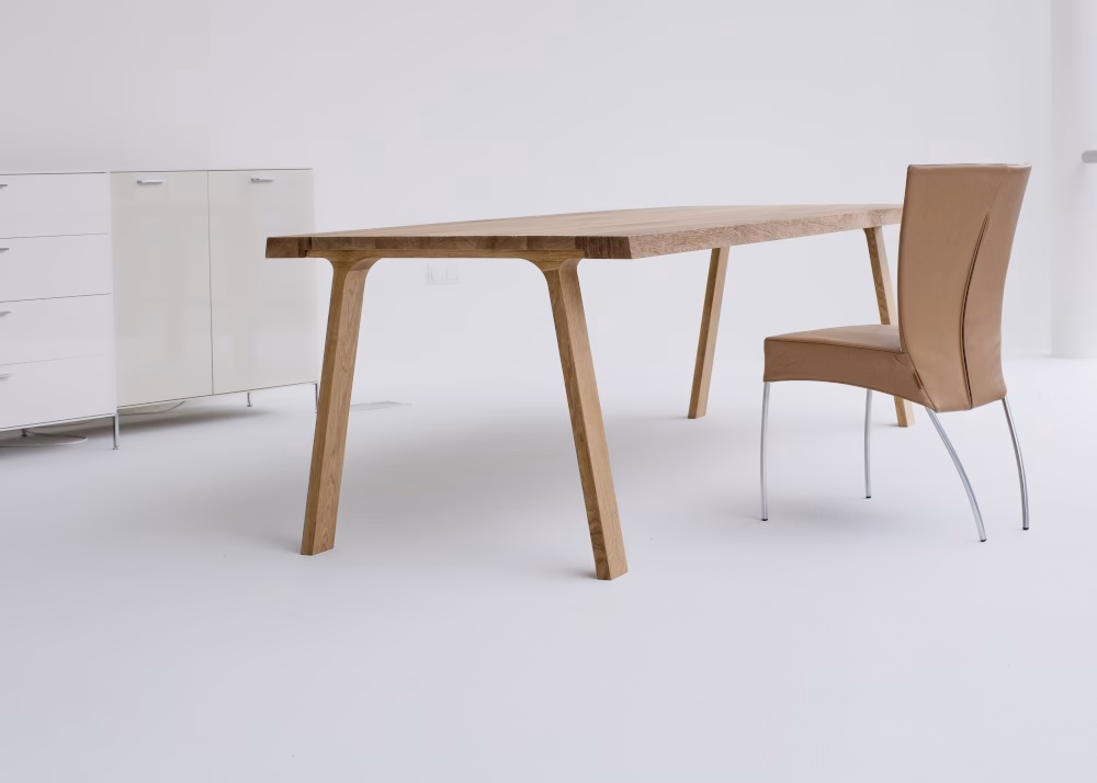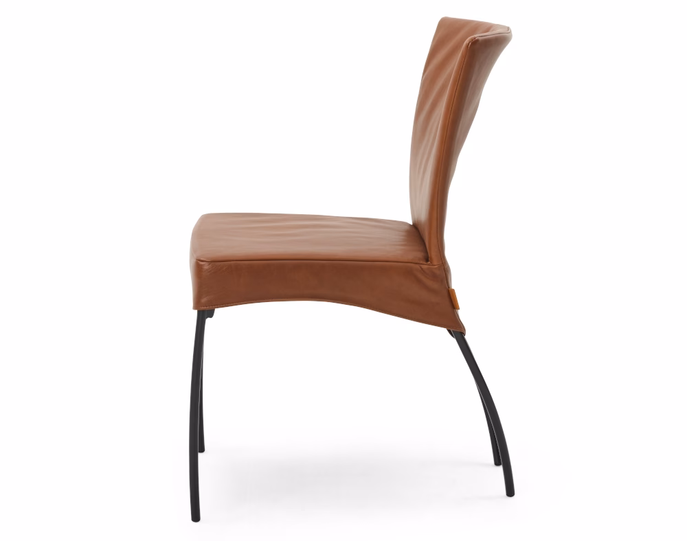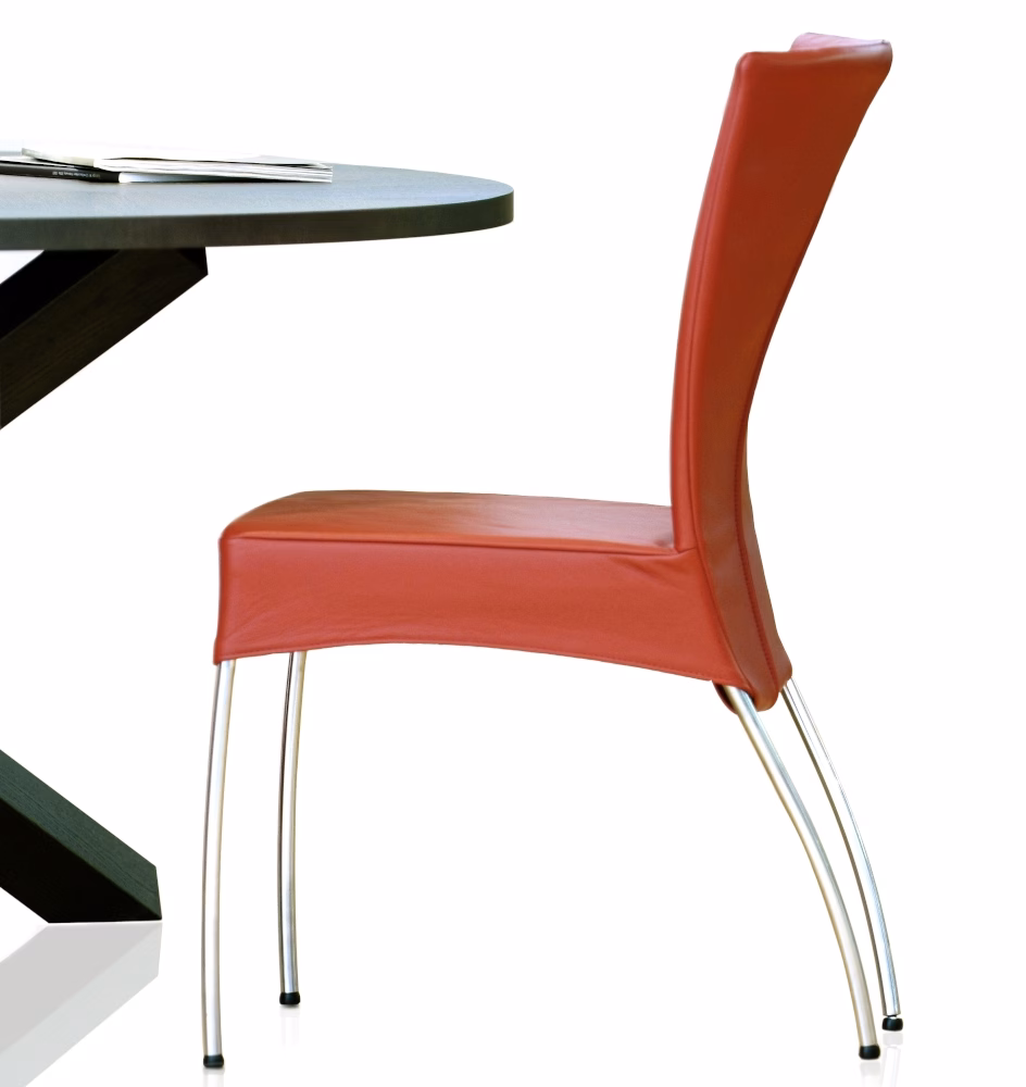 From an imaginary point below floor level, the Spica’s thin legs appear to spiral out into two fans: the seat and the back.