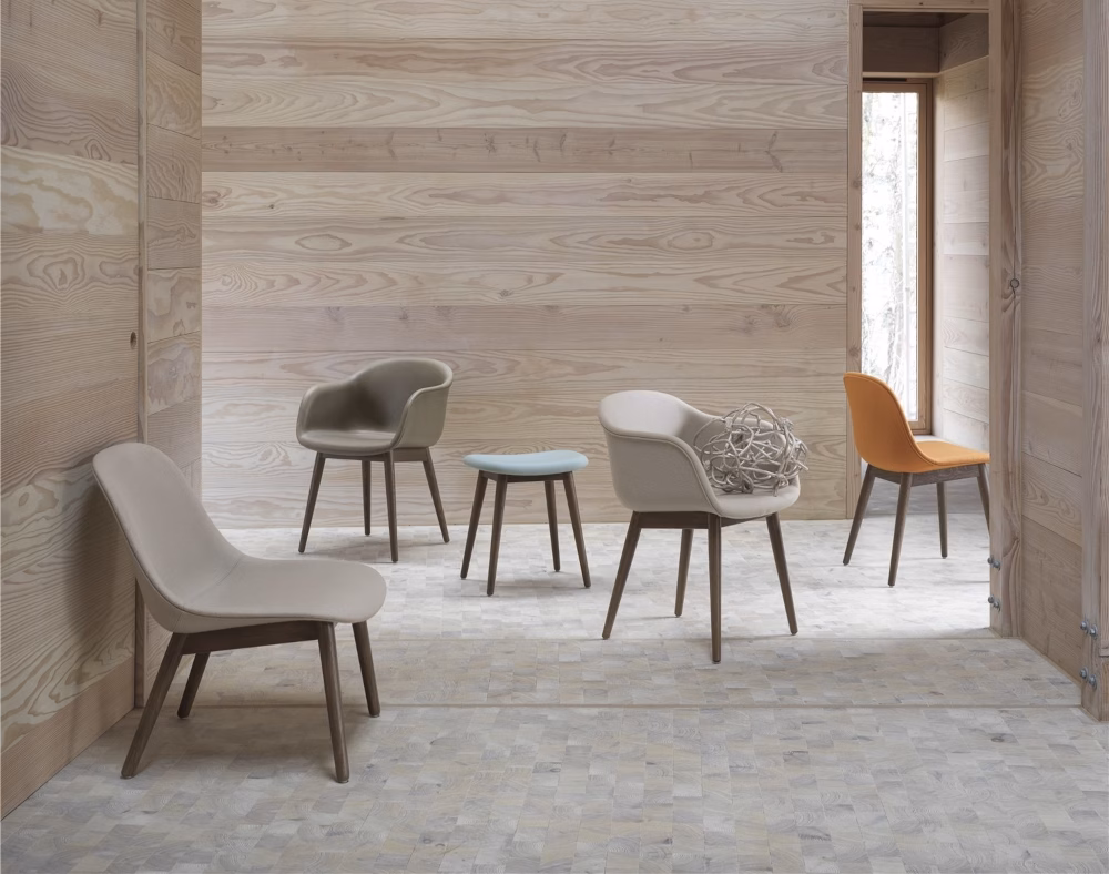 With extensive comfort and a lightly hovering appearance, the Fiber Lounge Chair invites the user in for a relaxed and comfortable seat. The design features soft and embracing curves for a welcoming look, making it an elegant match for any setting of the home, workplace or hospitality area. The shell of the Fiber Lounge Chair is made in an innovative composite of plastic and wood fibers for a textured, matte surface and soft, inviting touch. With its various upholstery options, the Fiber Lounge Chair can take many different expressions to match with the interior of any home or professional project.