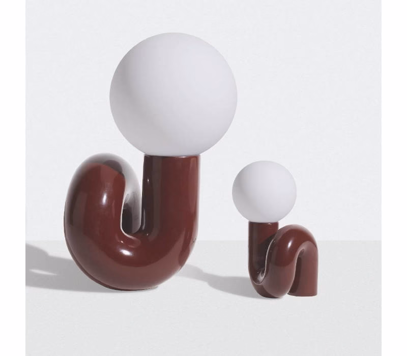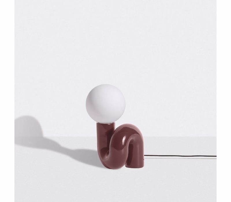 Neotenic is a collection of table lamps that blossomed out of Petite Friture’s first collaboration with American design studio Jumbo. Inspired by comforting childhood aesthetics, Neotenic flaunts generous, organic lines. The lamp’s base is shaped like corkscrew cavatappi pasta. The lamp is available in are perfectly in line with Petite Friture’s chromatic identity and suggest a simplified portrayal of an aubergine and tomato sauce.