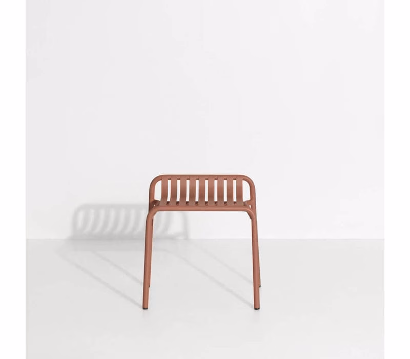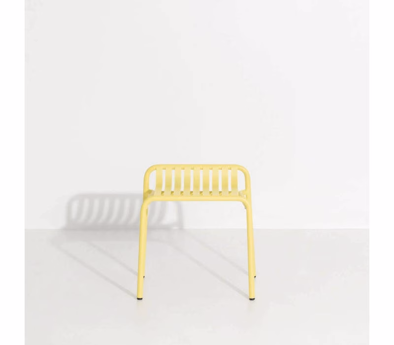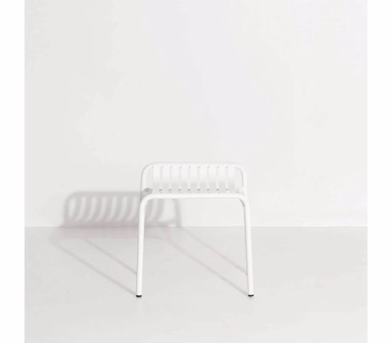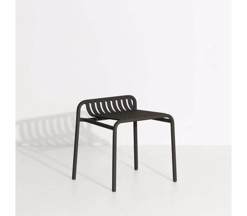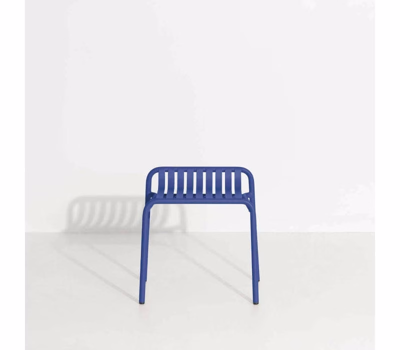 The WEEK-END collection is a full range of outdoor furniture. Designed with practicality in mind, all of the seats are stackable. The oval and circular shape drawn by the backrests makes them a graphic statement. The impact of the horizontal and ver tical slats, so similar to stripes, highlights the full and empty spaces, asser ting the identity of the collection.