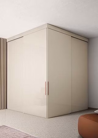 Functional walk-in closets. These can be customised and there are a wide range of complements available: illuminated or mirrored back panel, make-up vanity and space-organising accessories.