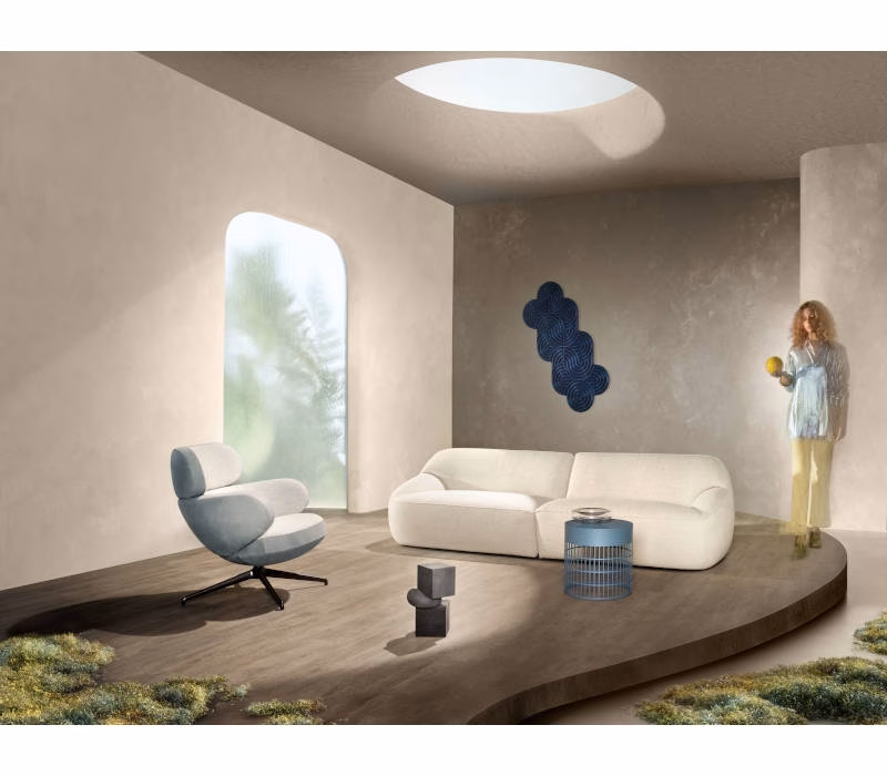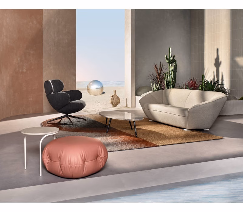 Its intriguing form with rounded shapes and straight horizontal lines make Bibo inviting, sophisticated and distinctive. You can choose from one or two types of upholstery. And, of course, it comes with an optional matching footstool so you can put your feet up and enjoy all the generous comfort provided by Bibo.