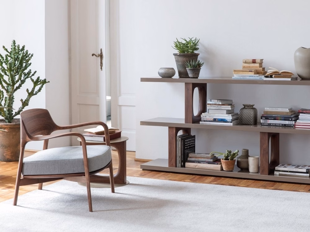 Porada Louis Armchair with Walnut in Fabric or Leather