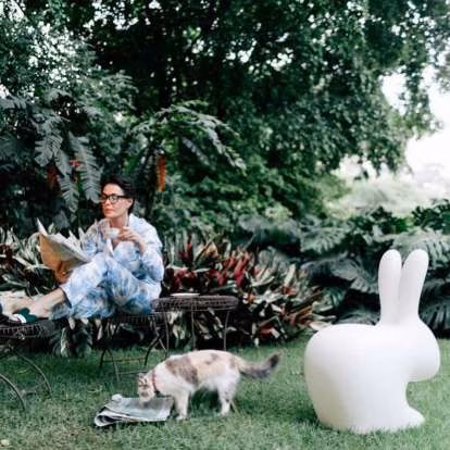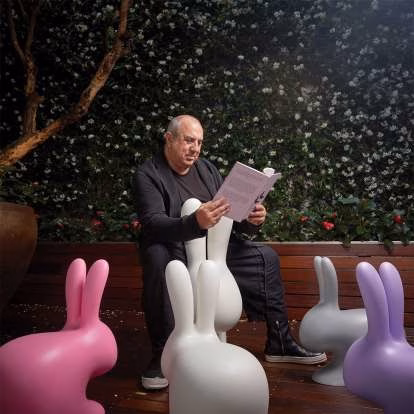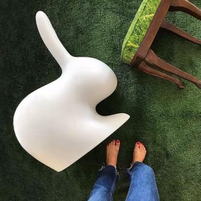 Hop on this extraordinary one! Brightly coloured and boldly shaped, this chair doesn’t want to burrow away.Rabbit chair, designed by Stefano Giovannoni can be used either by leaning against the ears or on the opposite side, riding it and resting the forearms on its ears. The most authentic Qeeboo’s hat tricks. Suitable for both indoor and outdoor enviroments.