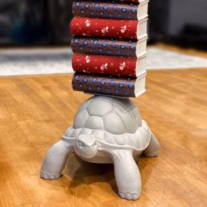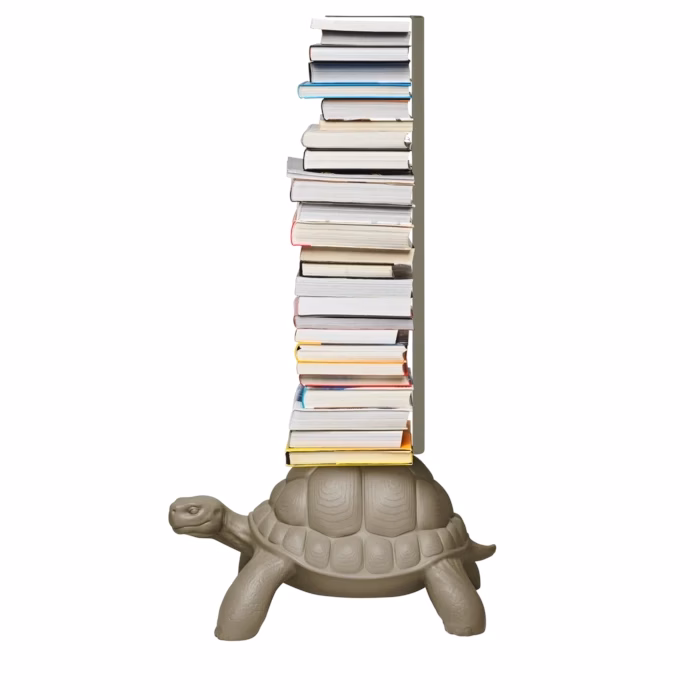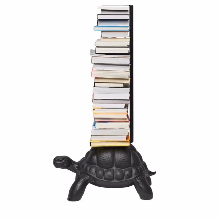Turtle carry bookcase is carrying on its carapace a pile of your favorite books. Thanks to a metal support with three shelves, be sure they will be held tight! Once again Marcantonio is inspired by the natural world and its bizarre forms and he is able to translate them into artistic concepts capable of bringing sophisticated irony to our homes
