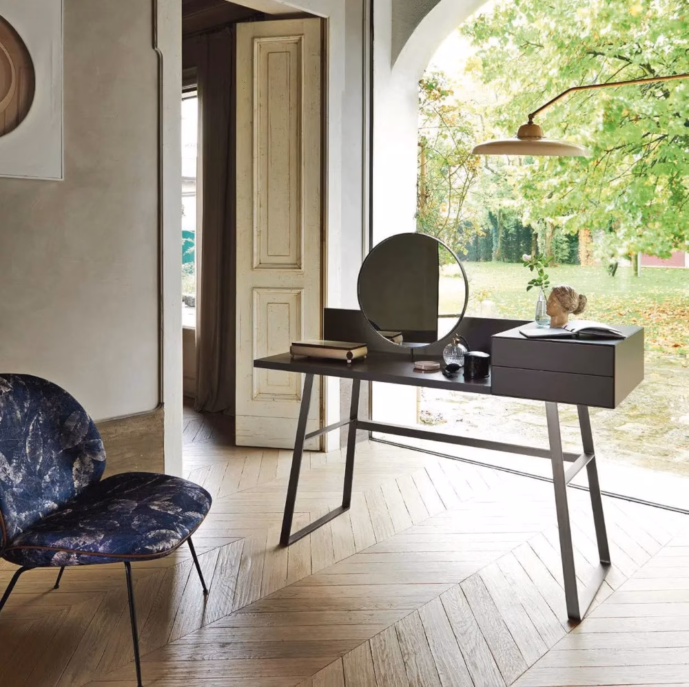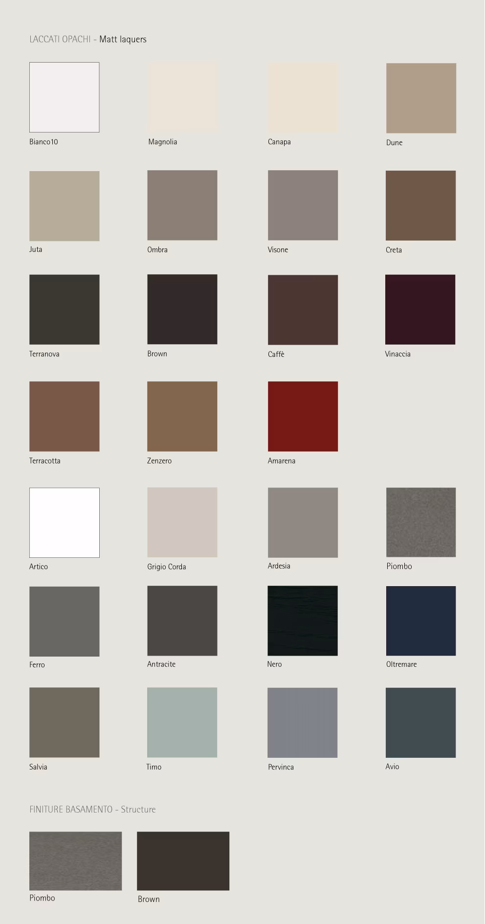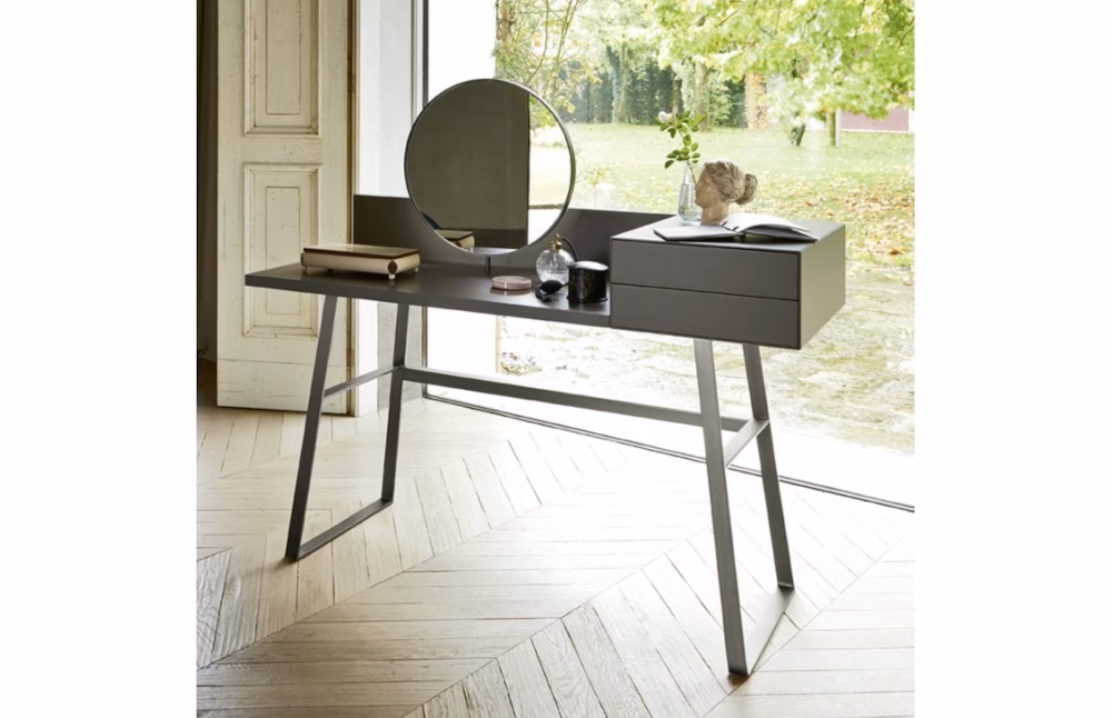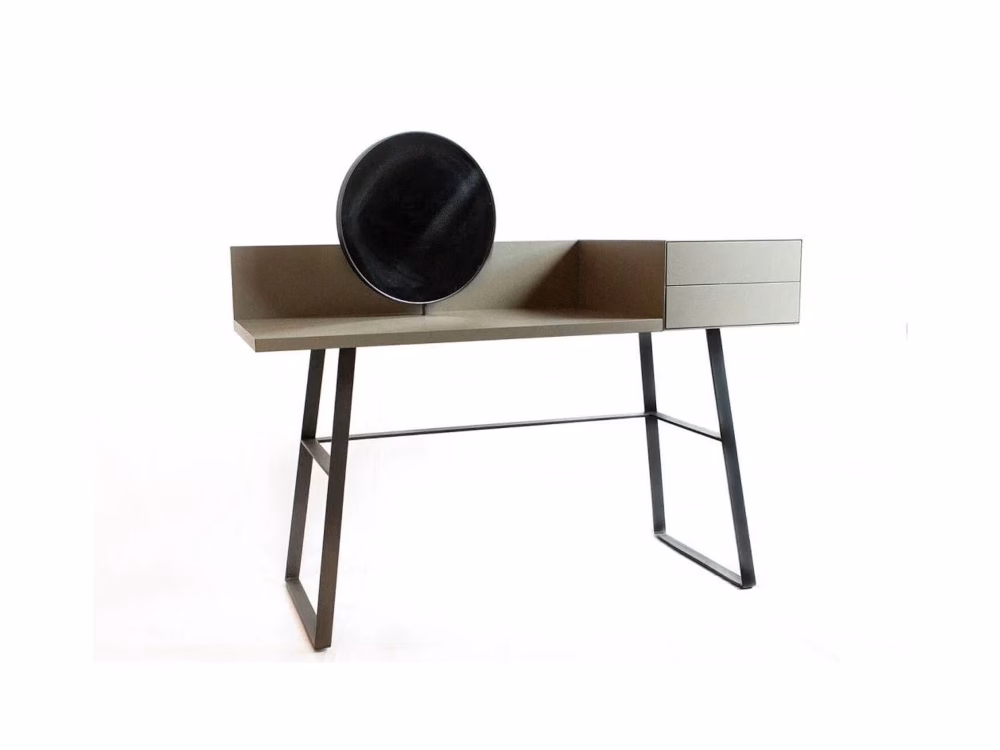 - Segreto with metal base support in Brown or Piombo Gret coating and drawer unit with 2 push opening drawers.