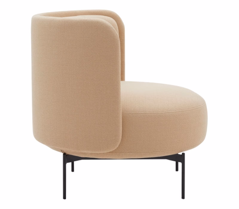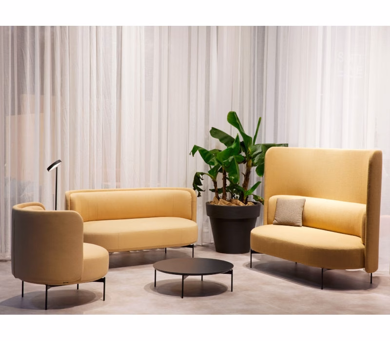 JOE is a series of soft, flexible seating furniture based on strong shapes, geometric curves, and clear lines. The centrepiece of the series is a circular pouf with slim legs. All seating elements are embraced by a light back wall that serves as a protective shell and creates comfort and privacy for relaxation or private conversations in hotel lobbies, lounge areas, libraries, or modern offices spaces. The soft backrest cushion provides maximum comfort. The family of seating poufs, sofas and armchairs are completed by a matching coffee table with the same floating appearance.
