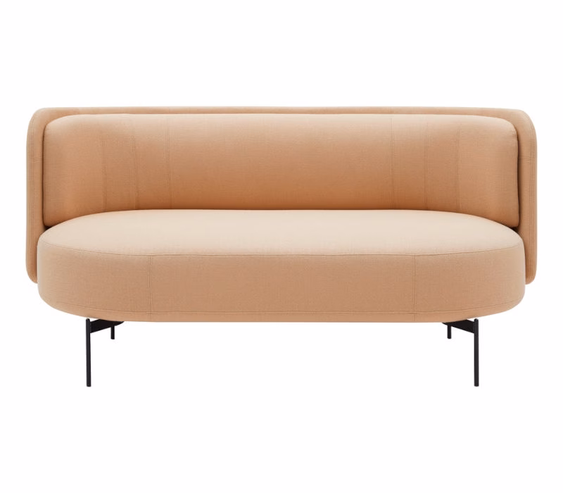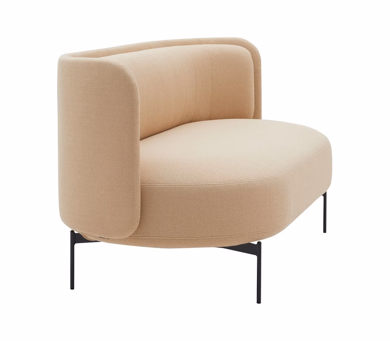 JOE is a series of soft, flexible seating furniture based on strong shapes, geometric curves, and clear lines. The centrepiece of the series is a circular pouf with slim legs. All seating elements are embraced by a light back wall that serves as a protective shell and creates comfort and privacy for relaxation or private conversations in hotel lobbies, lounge areas, libraries, or modern offices spaces. The soft backrest cushion provides maximum comfort. The family of seating poufs, sofas and armchairs are completed by a matching coffee table with the same floating appearance.