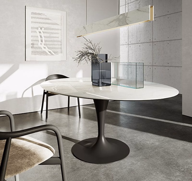 Elegant and light, this table takes different personalities according to the chosen material and colour combinations. In the Elliptical version it offers a minimalistic aesthetic presence in the interiors.