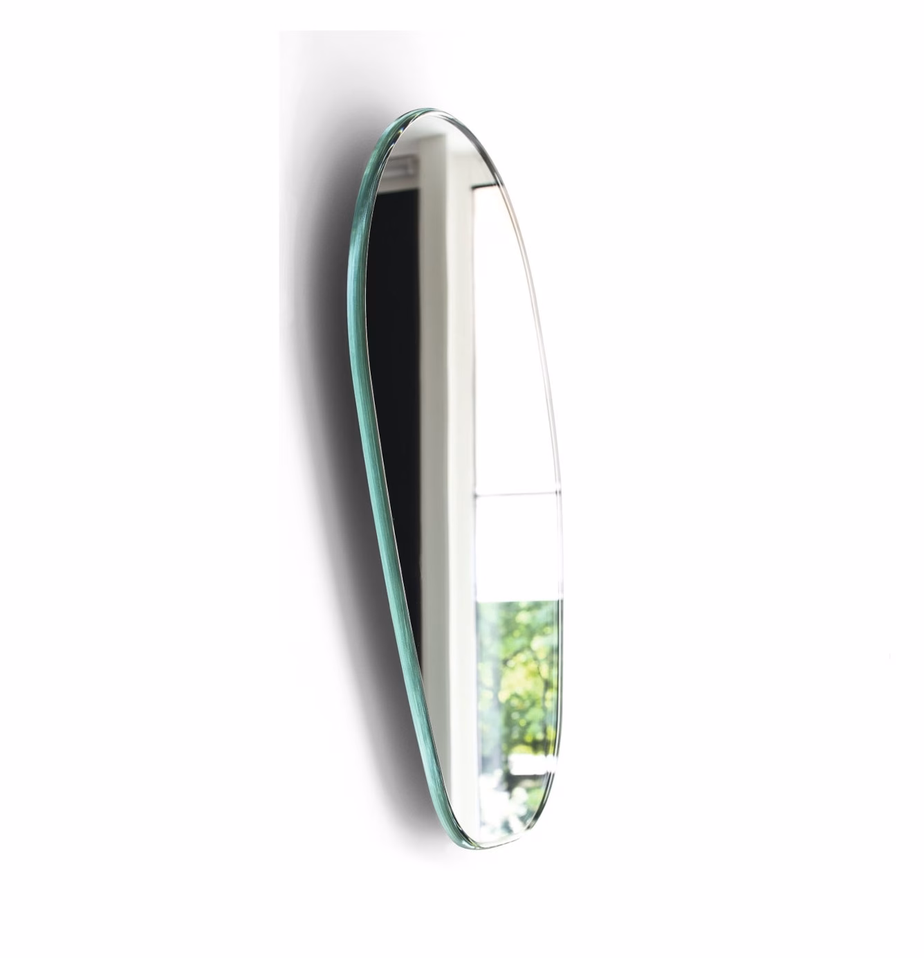 Sovet Italia gocce di rugiada wall mirror Shaped extralight glass back mirrored, th. 15 or 6 mm, polished round edge. Different sizes available. A particular panel on the back of the mirror allows a 360° rotation. In the 15 mm th. version the mirror is available also in the smoked and bronzed fi nish.
