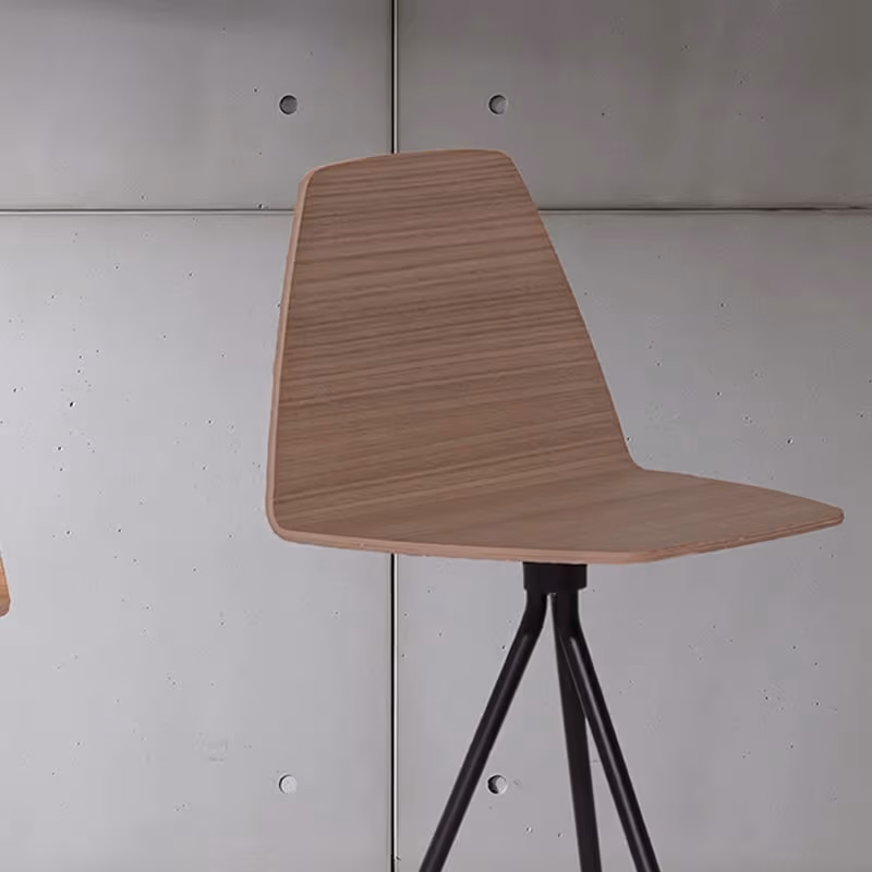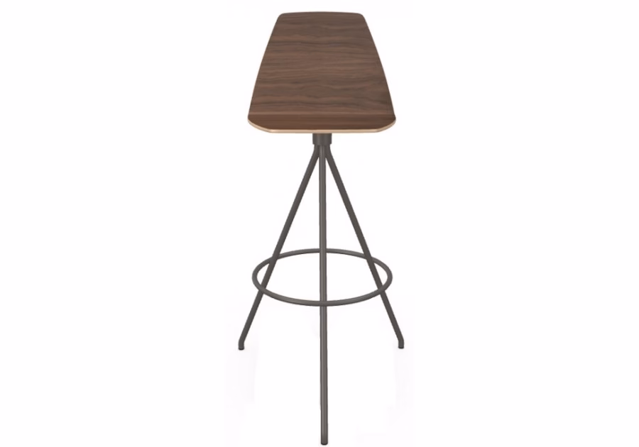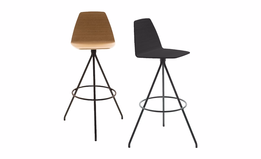 Stool with shell in multi-layer wood available in Canaletto walnut, natural oak or stained wengé finish. Legs in embossed metal, various finishes