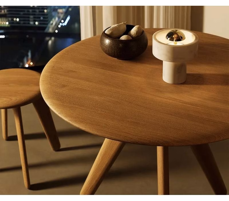 The beauty of this table lies in its simplicity and the quality of materials used. The clean lines and round shape offer a contemporary take on traditional dining tables, making it a statement piece in any room. Whether paired with modern chairs for a chic look or with more classic seating for a contrast, this table stands out for its understated elegance.