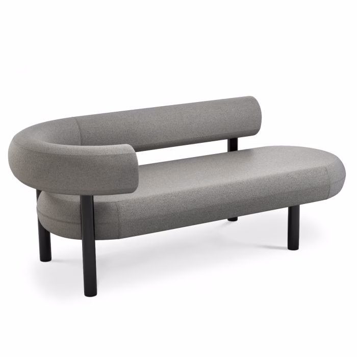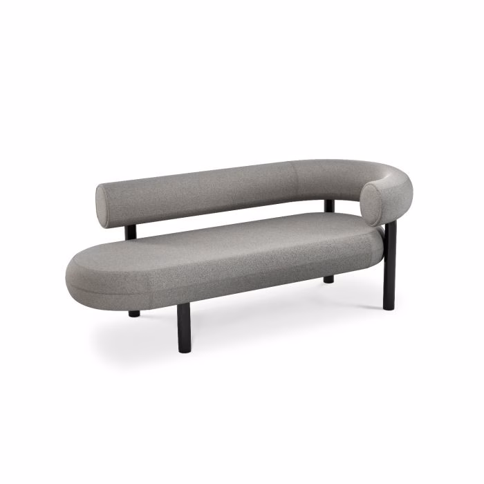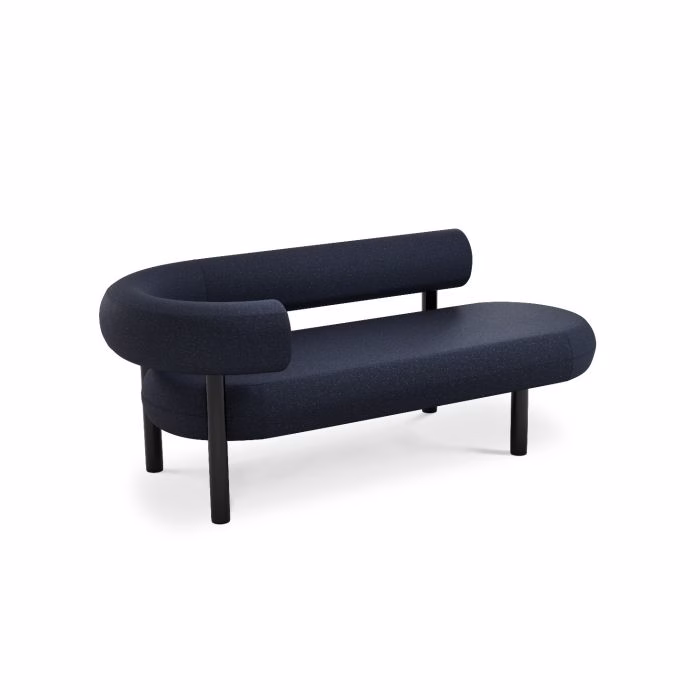 Designed to hug the body and allowing for multiple sitting positions, this chaise longue is upholstered in Wool. Fat is made from moulded foam with a metal leg launching in high gloss black lacquer and made to order upholstery. Manufactured in Europe, hand finished and upholstered by experienced craftsmen.