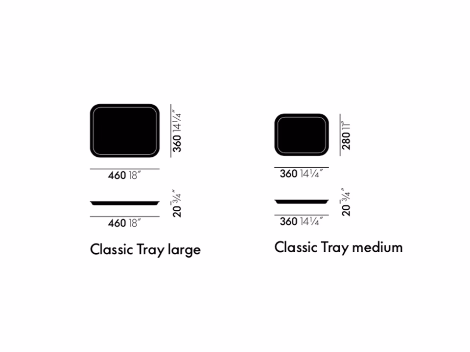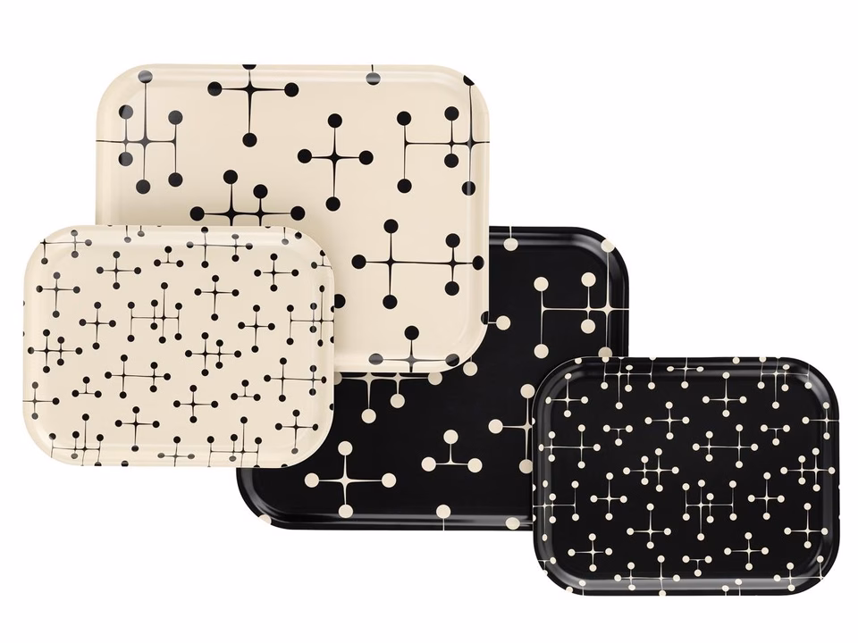 The Classic Trays (1947-74) by Alexander Girard and Charles and Ray Eames come in three sizes. Made of laminated plywood, they feature motifs from the rich store of images created by these legendary designers.