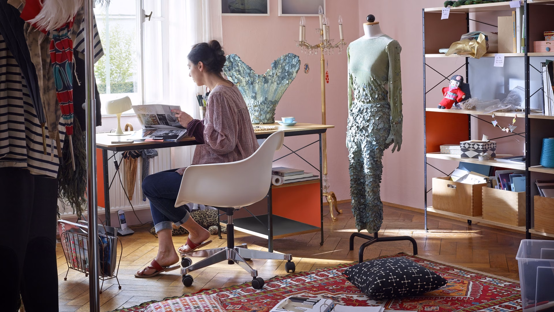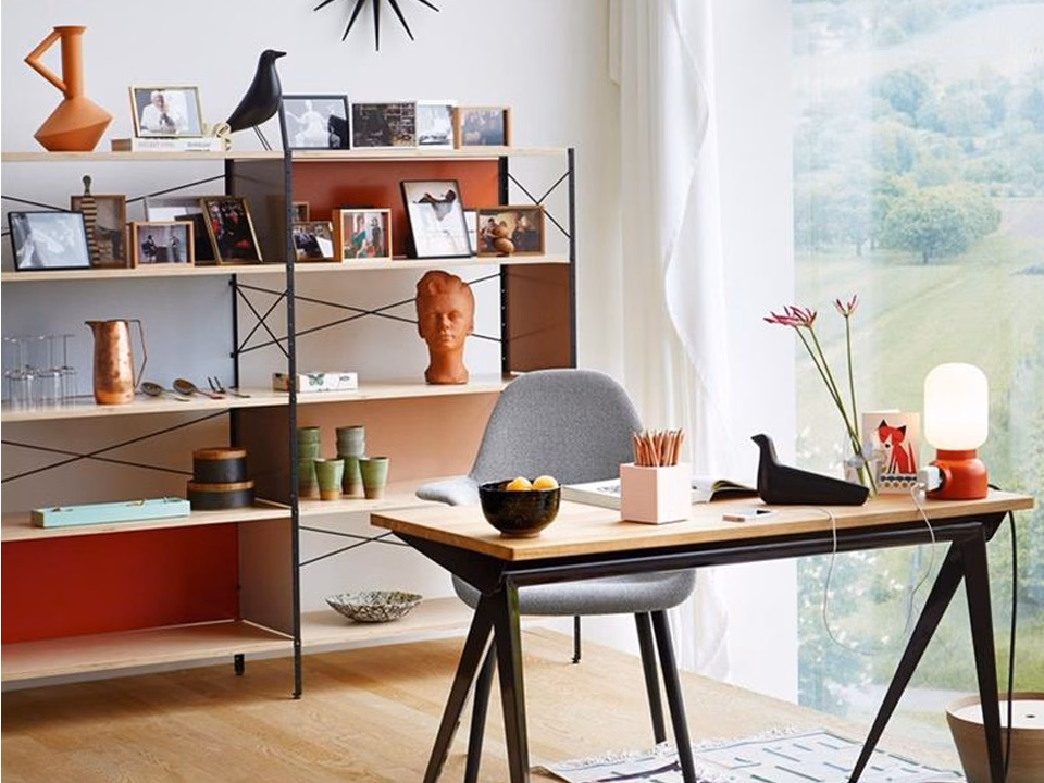 Charles and Ray Eames developed the Eames Storage Units (1949) according to the principles of industrial production. The ESU Shelf is available in various heights; the ESU Bookcase is narrower and comes in one standard size