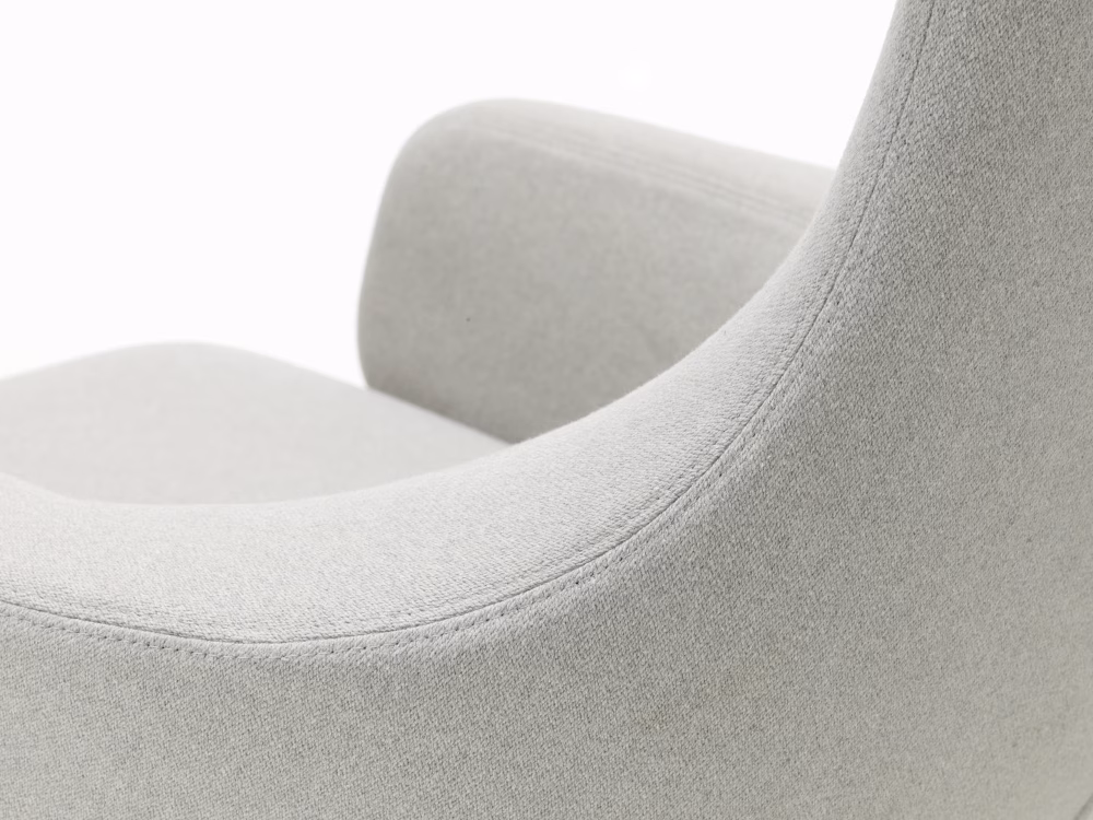 The swivel-based lounge chairs Repos and Grand Repos offer unparalleled comfort with their generous padding, inviting armrests and synchronised mechanism concealed beneath the upholstery. The chairs allow the sitter to move from an upright position to a reclined angle for resting, locking the backrest in any position. The resistance of the backrest can be manually adjusted to the user’s weight.