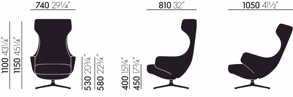 A synchronised mechanism is concealed beneath the upholstery of the Grand Repos wing chair and can be locked in any position, for optimum back support and utmost comfort at any reclining angle. The characteristic head section invites the user to lean back and creates a sense of shelter and seclusion. The decorative seams in the fabric or leather upholstery of some versions lend the armchair an almost artisanal look