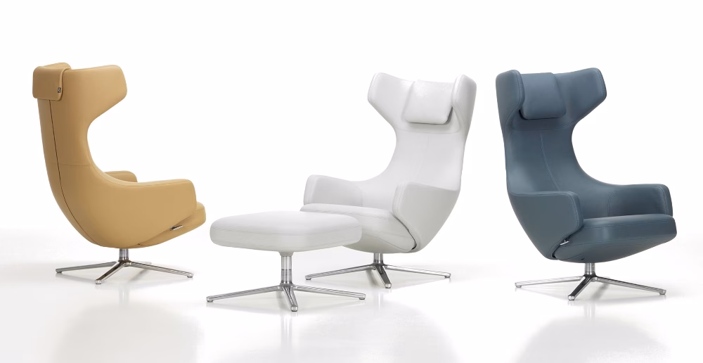 Vitra Grand Repos Lounge Chair in Leather or Fabric with Ottoman or Panchina