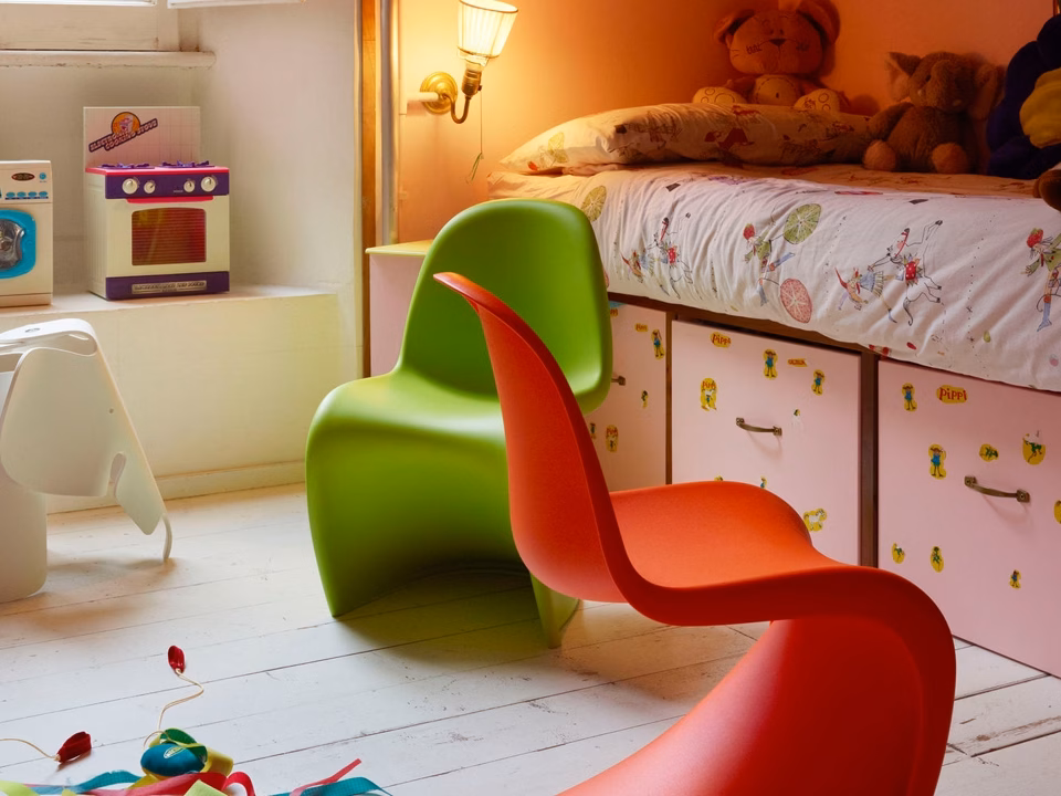 Identical to the original in terms of material and shape, the children’s version is approximately 25 percent smaller than the full-size Panton Chair. This makes Panton Junior an ideal chair for children of nursery and primary school age.