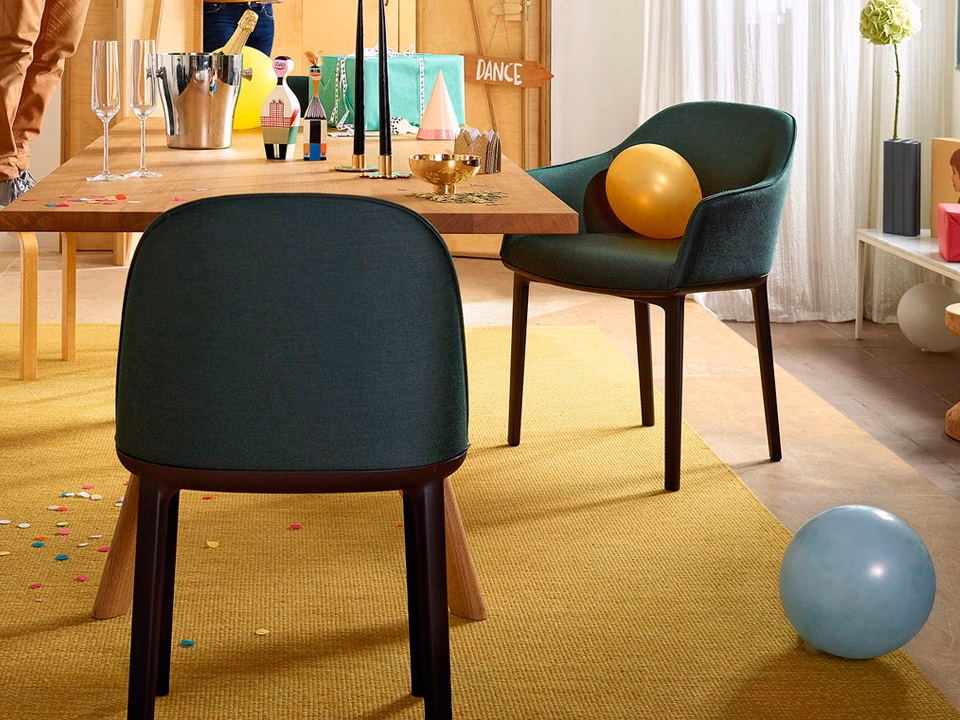 The Softshell Chair by Ronan and Erwan Bouroullec will surprise users with its exceptional comfort: flexible ribs are concealed in the back shell and adapt to the user, providing freedom of movement. The four-legged version of the elegant, lounge-style chair can be combined with a wide selection of dining tables.