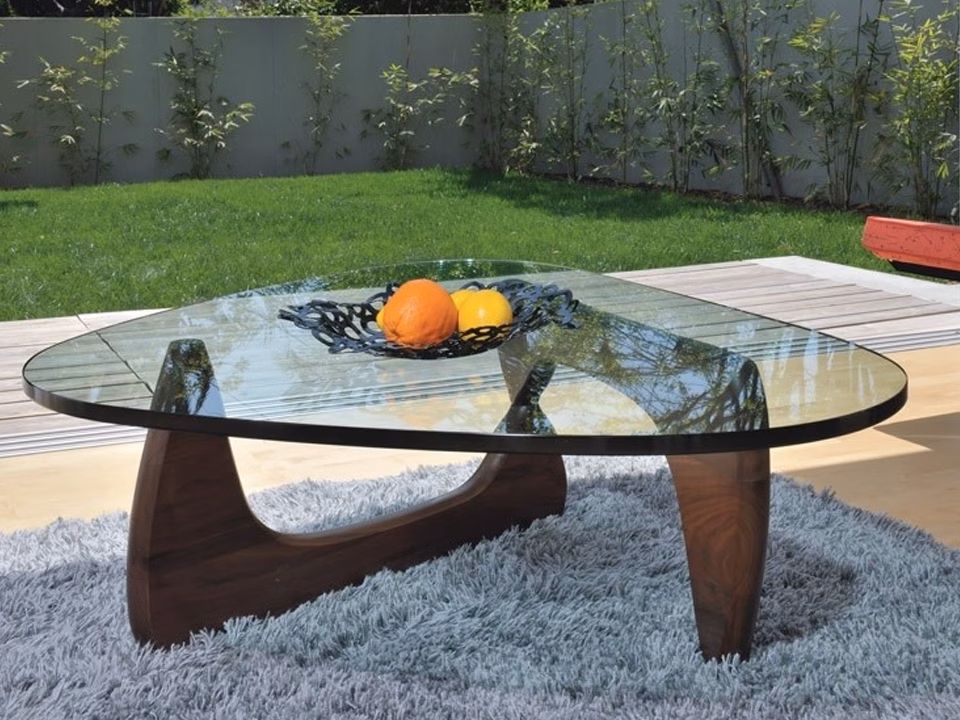 In creating his design for the Coffee Table, Isamu Noguchi translated the biomorphic aesthetic of his sculptural works into a piece of furniture with distinctive organic forms. Presumably for this reason, Noguchi regarded the table as his best furniture design. Two wooden leg elements, which are available in black ash, maple or walnut, are positioned at a right angle to provide a stable support for the heavy, sturdy glass top