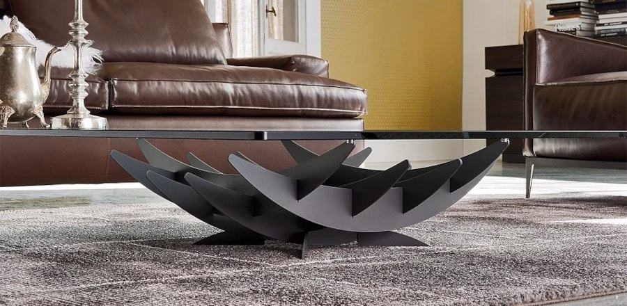 The living room glass coffee table Atlas has a sculptured base that can be appreciated from all angles, through the transparent glass top. The design intersections in the steel base are reminiscent of a portion of the terrestrial globe, divided by meridians and parallels. The top rests on four points, leaving the other elements that form the base free and creating a suspended effect. This modern glass coffee table is made in different shapes and sizes to adapt to every stylistic need.