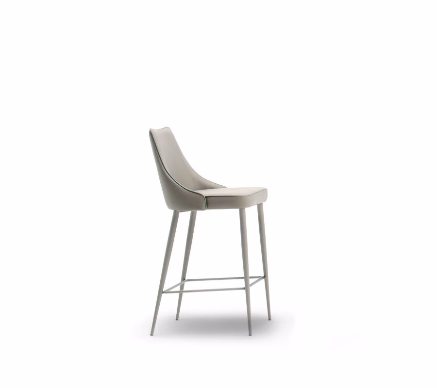 - Material: Barstool with lacquered Metal frame, seat and back upholstered and covered.
