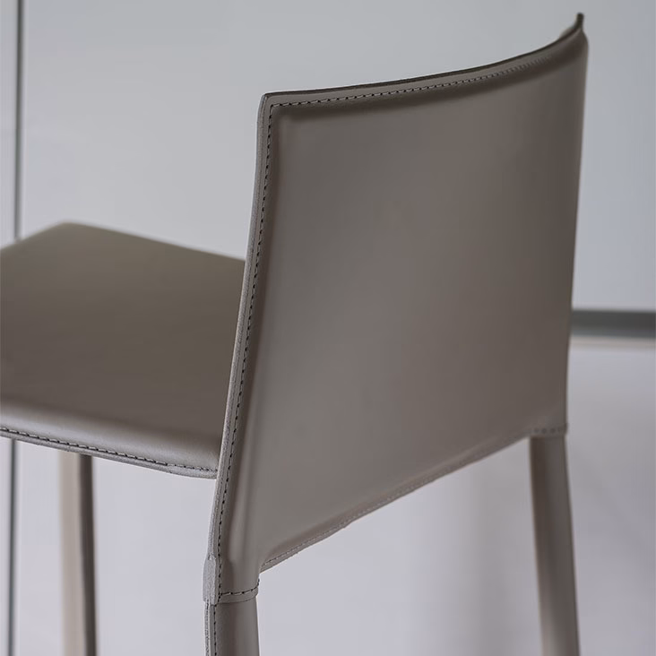 Contemporary high chair with metal frame fully covered in Italian leather, except for the front footrest. Standard stitching.