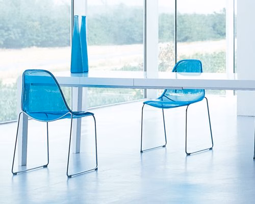 | Day Dream, a creative idea has originated a chair with an ergonomic and appealing shape. Designed by Archirivolto, once more handling with testing on plastic materials, Day Dream has a coloured trasparent polycarbonate shell which is clipped on the frame without screws, the result is a clean and pure look.