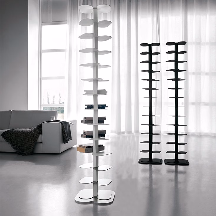 Bookcase with 13 shelves in white (OP71), black (OP17) painted or titanium (GFM11) embossed steel.