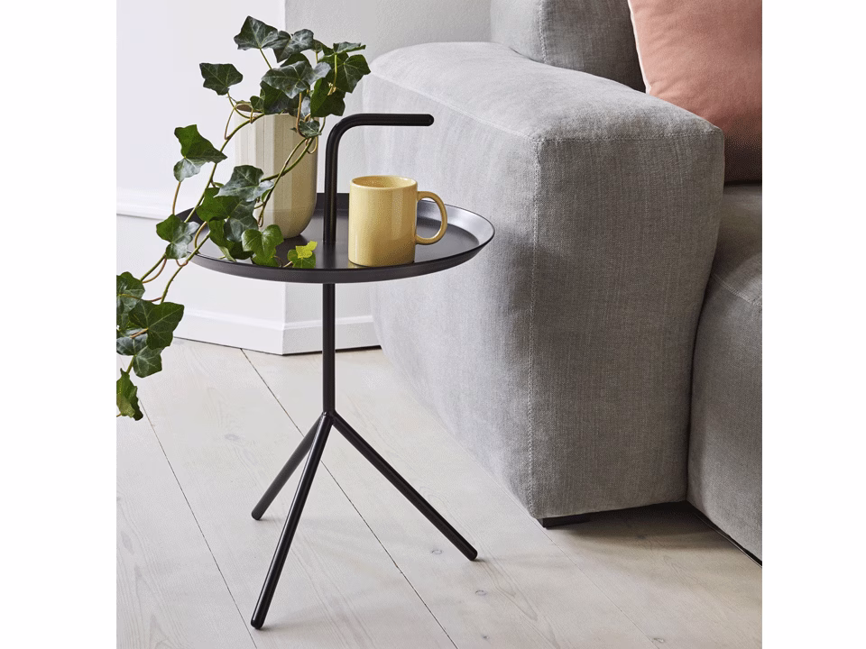 Thomas Bentzen’s portable side table is aptly named ‘Don’t Leave Me’. Abbreviated to DLM, it features a convenient handle that allows the metal table to be carried from room to room. Although it has a lightweight and portable structure, the three slanted legs provide great stability. Available in two sizes, the DLM and DLM XL make functional alternatives to traditional coffee tables. Suitable for inside use in most home or office environments.
