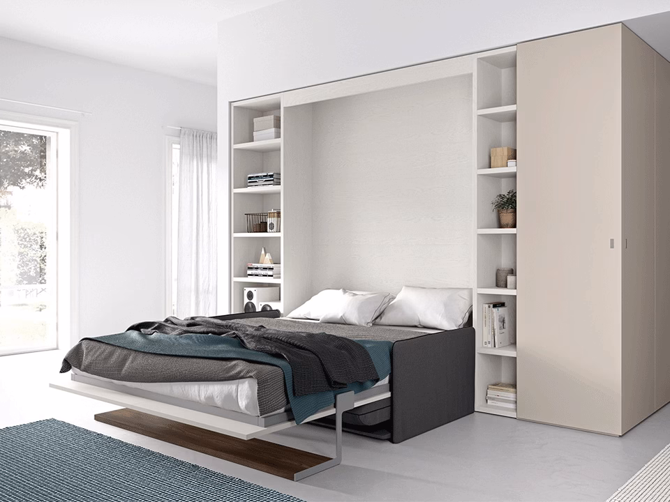 Functional solutions to cater to different space requirements, the beds with drop-down mechanism have outer panels available in any finish from the catalogue.