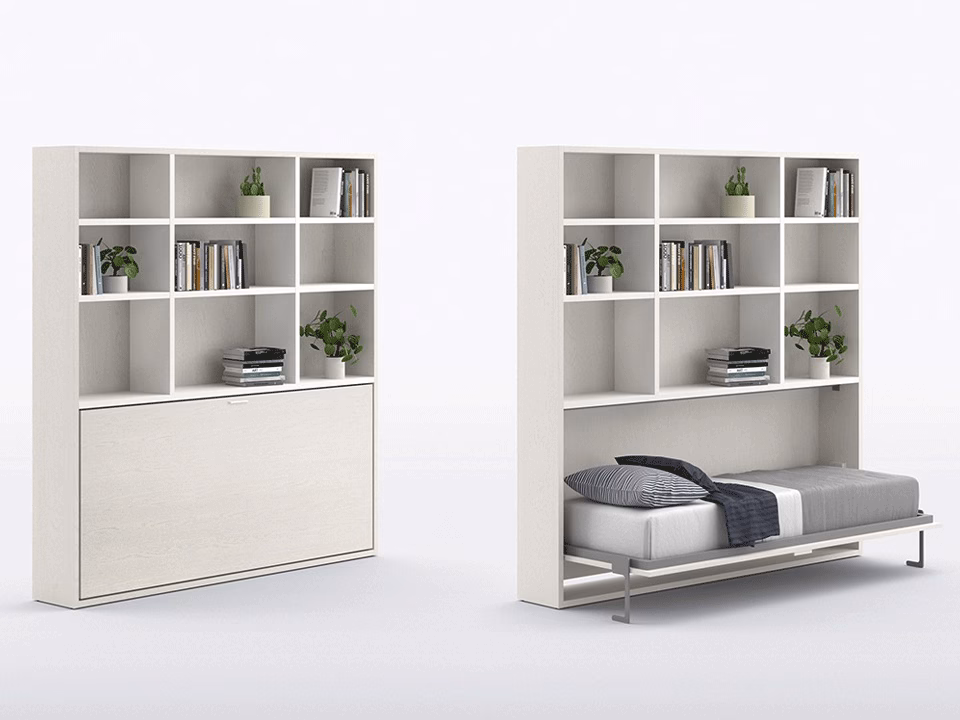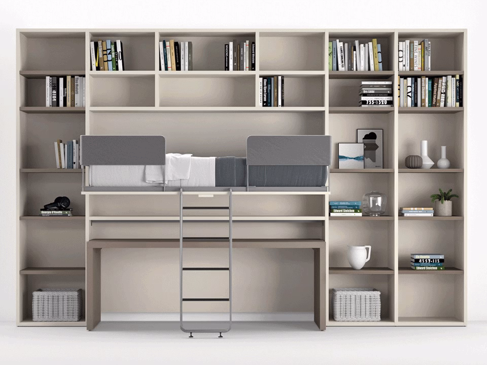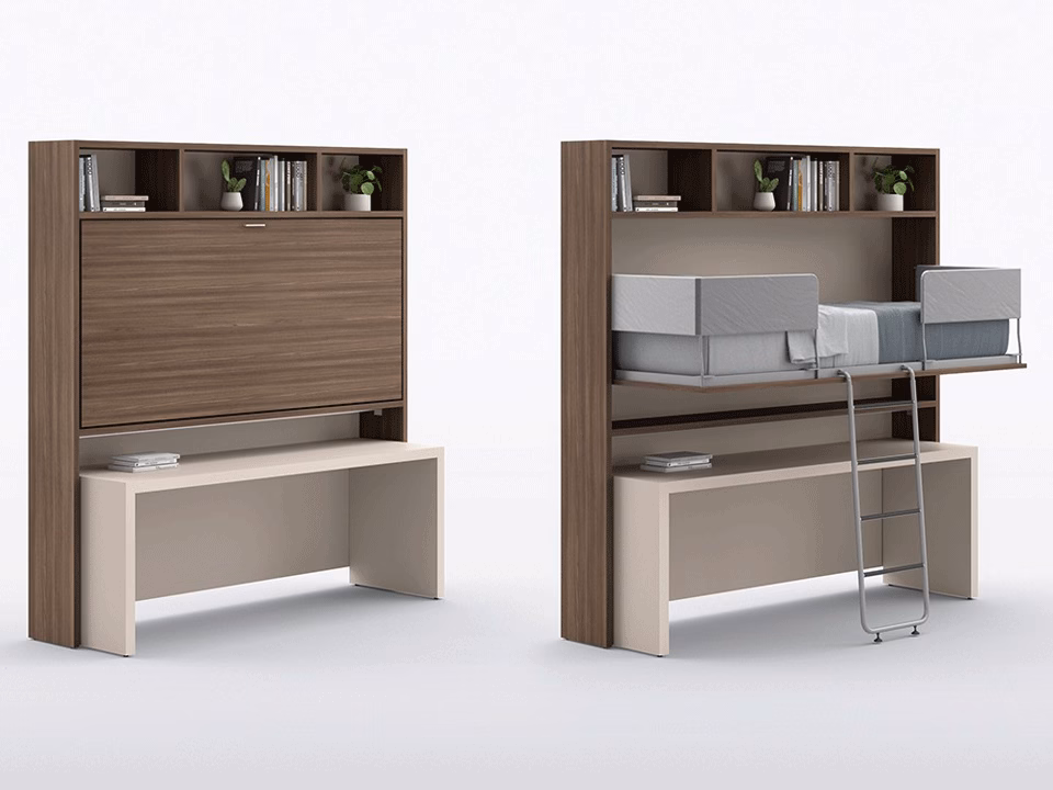 Functional solutions to cater to different space requirements, the beds with drop-down mechanism have outer panels available in any finish from the catalogue.