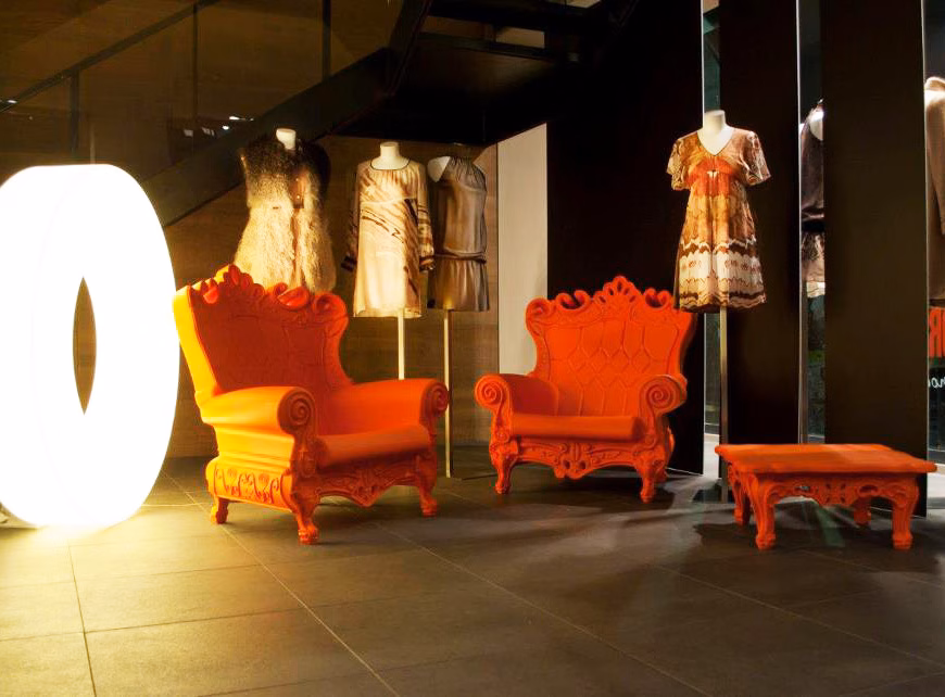 The low table Duke of Love perfectly complements the rococò style part of the original range of products of the Design of Love Collection. An ideal low table to complete a modern furnishing, at the same time with a touch of elegance maintaining a classic look. Like all the SLIDE collection, it is realised in recyclable polyethylene UV stabilised with rotational moulding technology. Resistant to all weather agents and easy to clean, the Duke of Love is available in 9 colours
