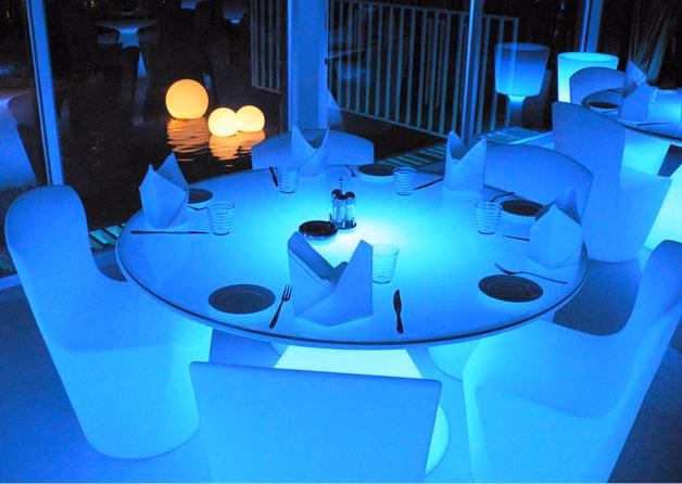 A unique atmosphere can be created by choosing a coloured bulb (you can also choose the light intensity of the bulb). Suitable for 6 to 8 persons. An extraordinarily beautiful furniture for private or public areas. Size: |