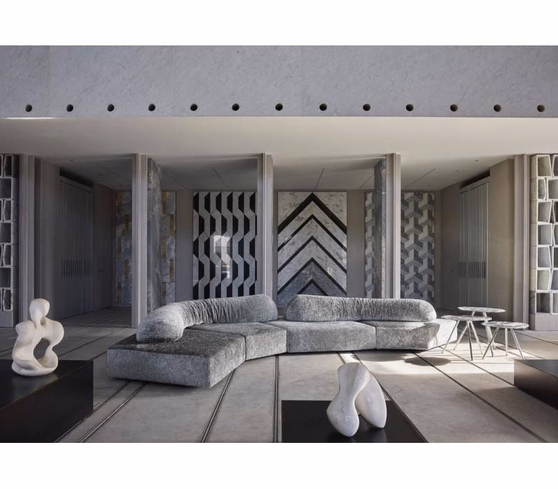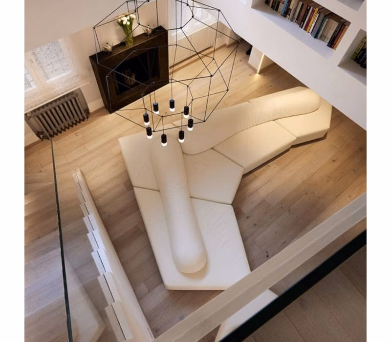A sectional system that leaves you free to express yourself and that can be customised as much as you like. Its geometrical pieces can be declined into different solutions: either combined in one composition or all free standing, to change the perspective of a room.