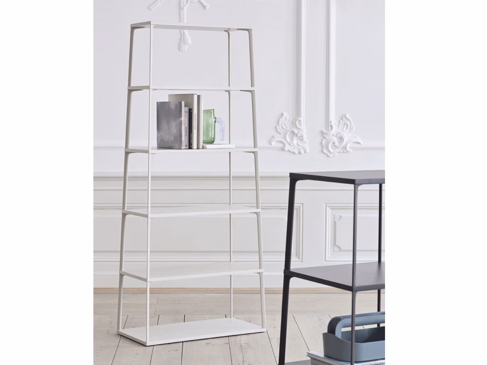 - Material: 18 mm powder coated MDF shelves with straight edge. Powder coated diecast aluminium profiles.
