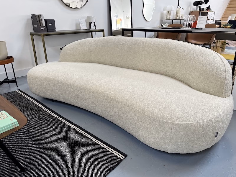 The sofa’s organically rounded forms create a striking appearance, it is a sofa with a strong personality and presence. The curved frame flows effortlessly from armrest to seat, enveloping you in a blend of design and a surprising amount of comfort.