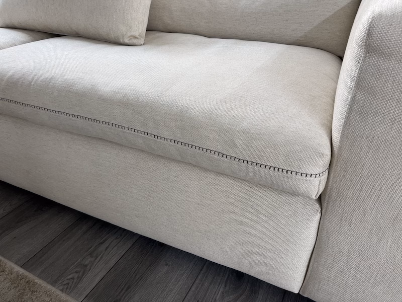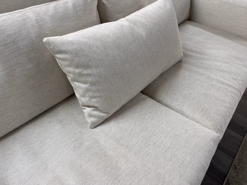 Hermes is a soft sofa characterized by its straight lines and the decorative stitch that stresses its three dimensions. The thin, made by goose feather, sitting cushion gives an elegant aesthetic, while the second integrated cushion provides support to create a sense