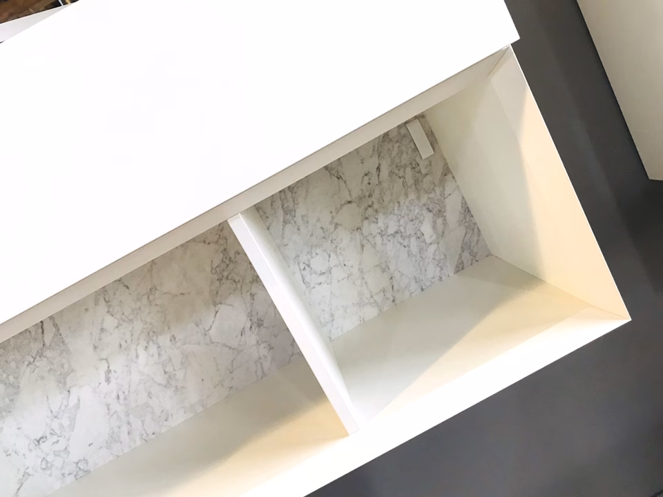 - Matt Lacquer Bianco with Matt Black Marble back panels
